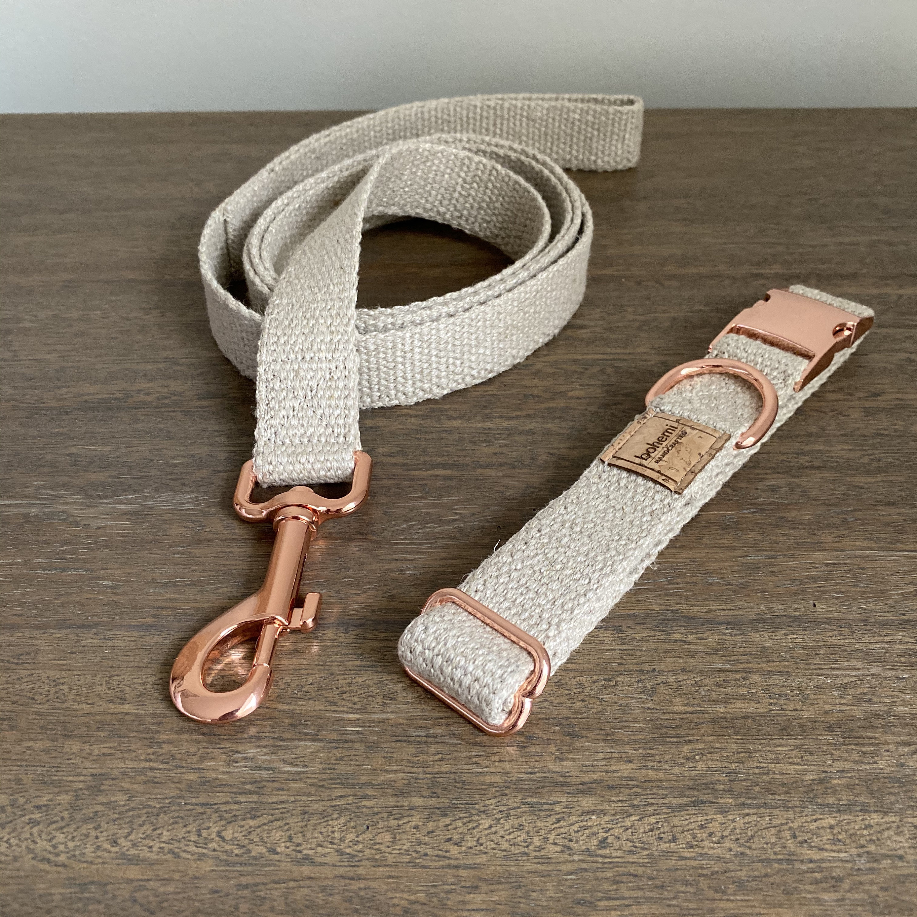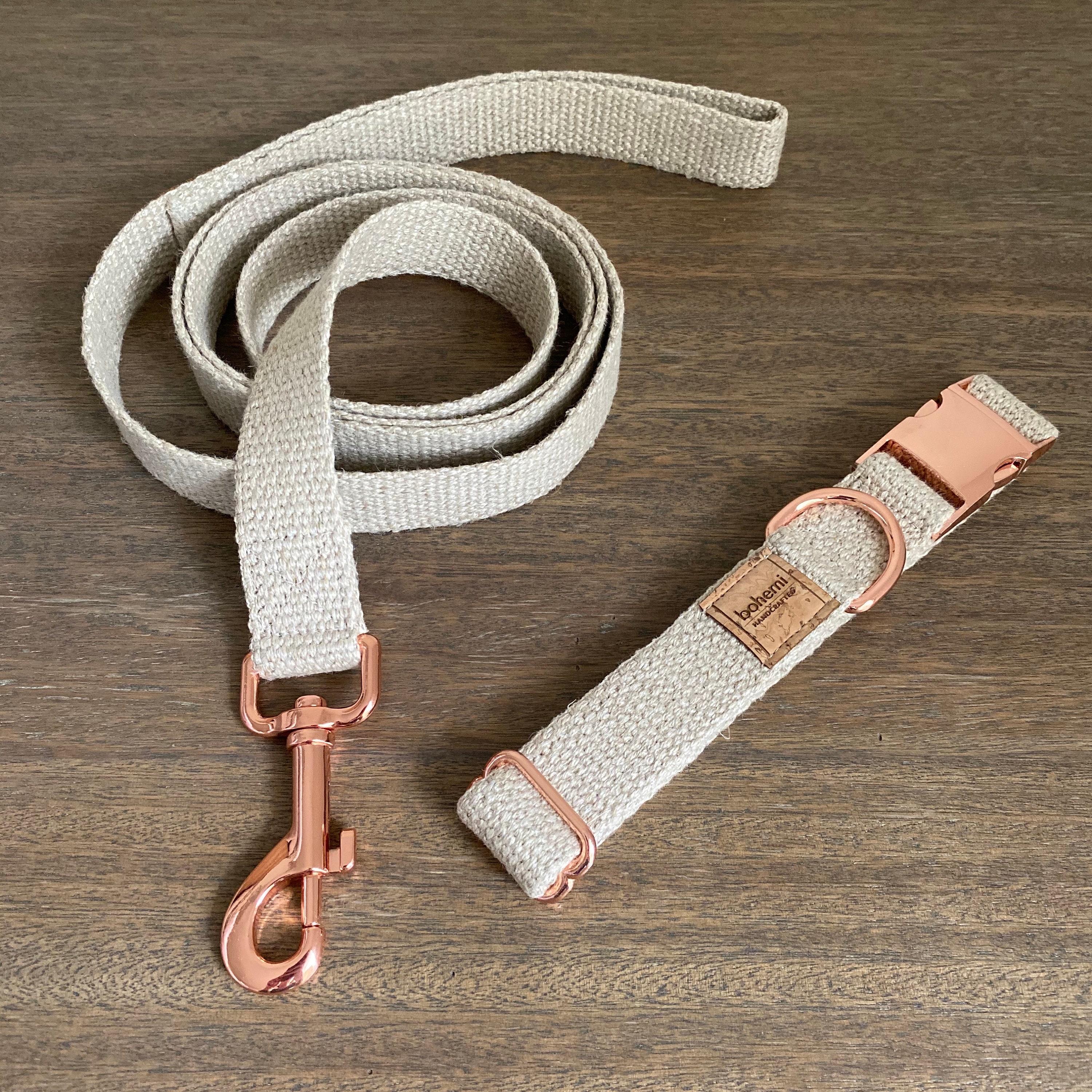 Rose Gold Organic Hemp Dog Collar & Lead Set