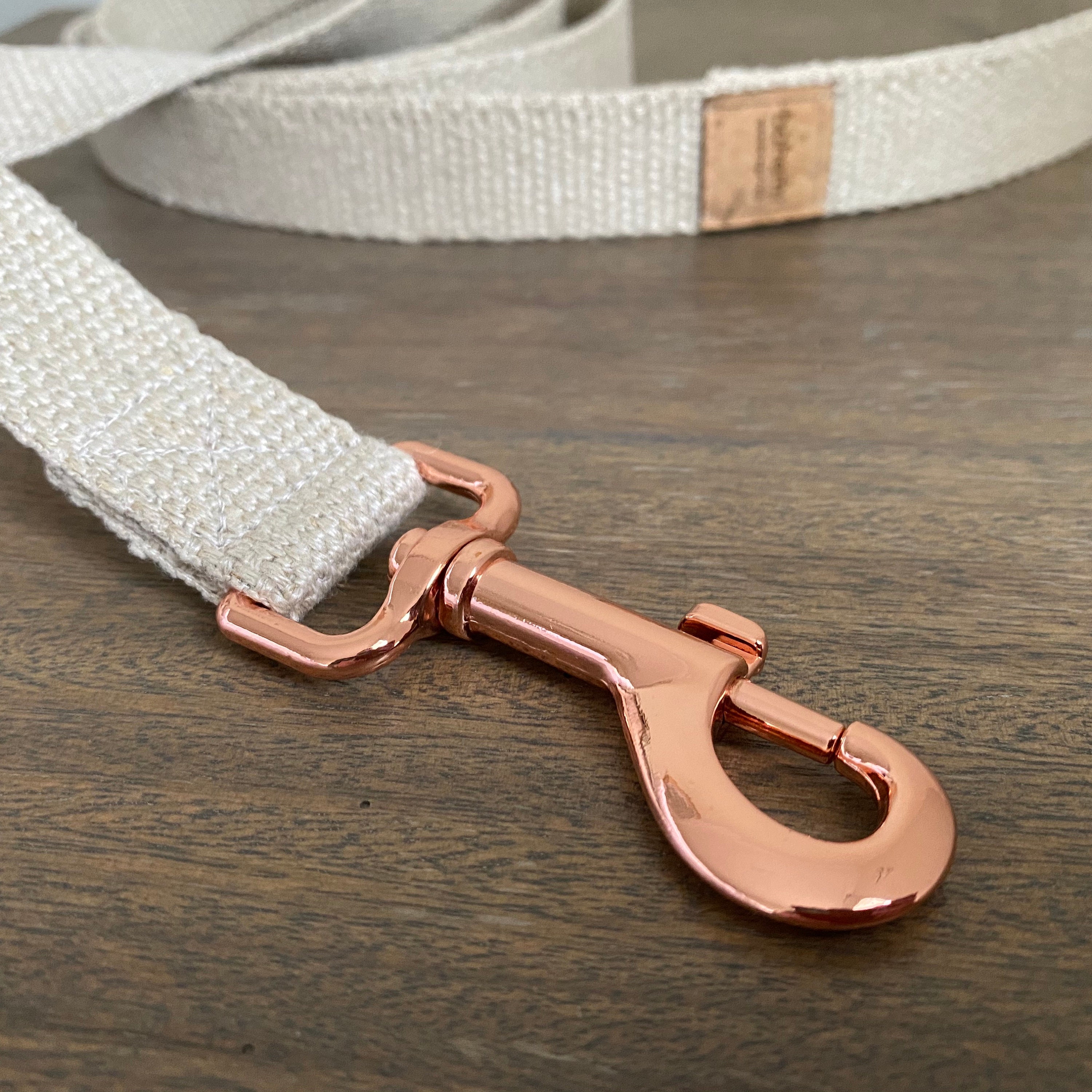 LEAD - This is a long lead measuring 180cm, made with the classic 26mm webbing and a high quality rose gold metal swivel clip which is strong and avoids tangles.