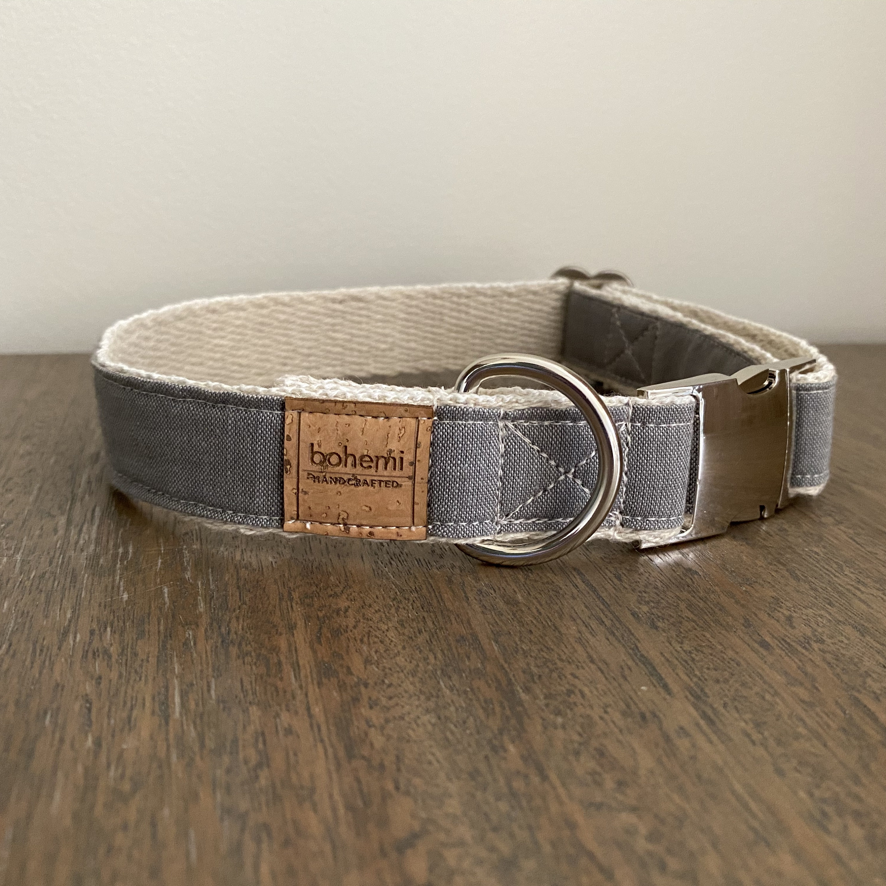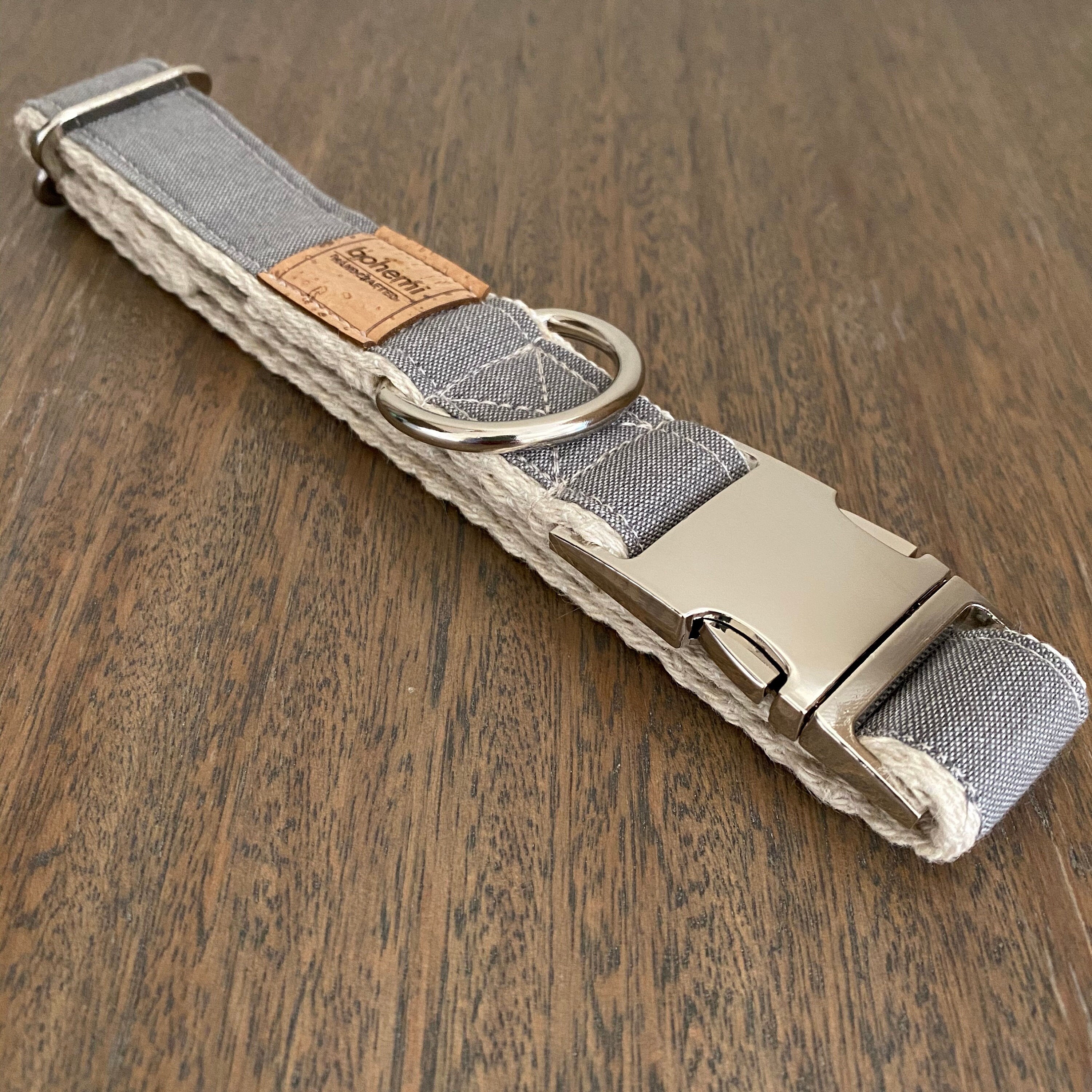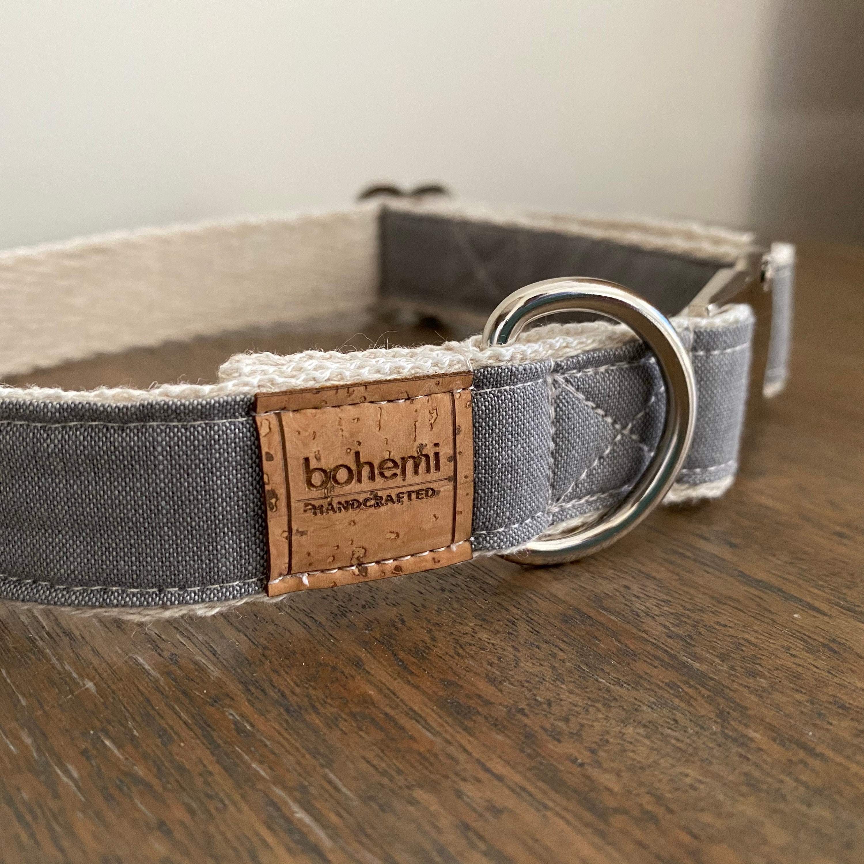Grey Hemp / Organic Cotton Dog Collar