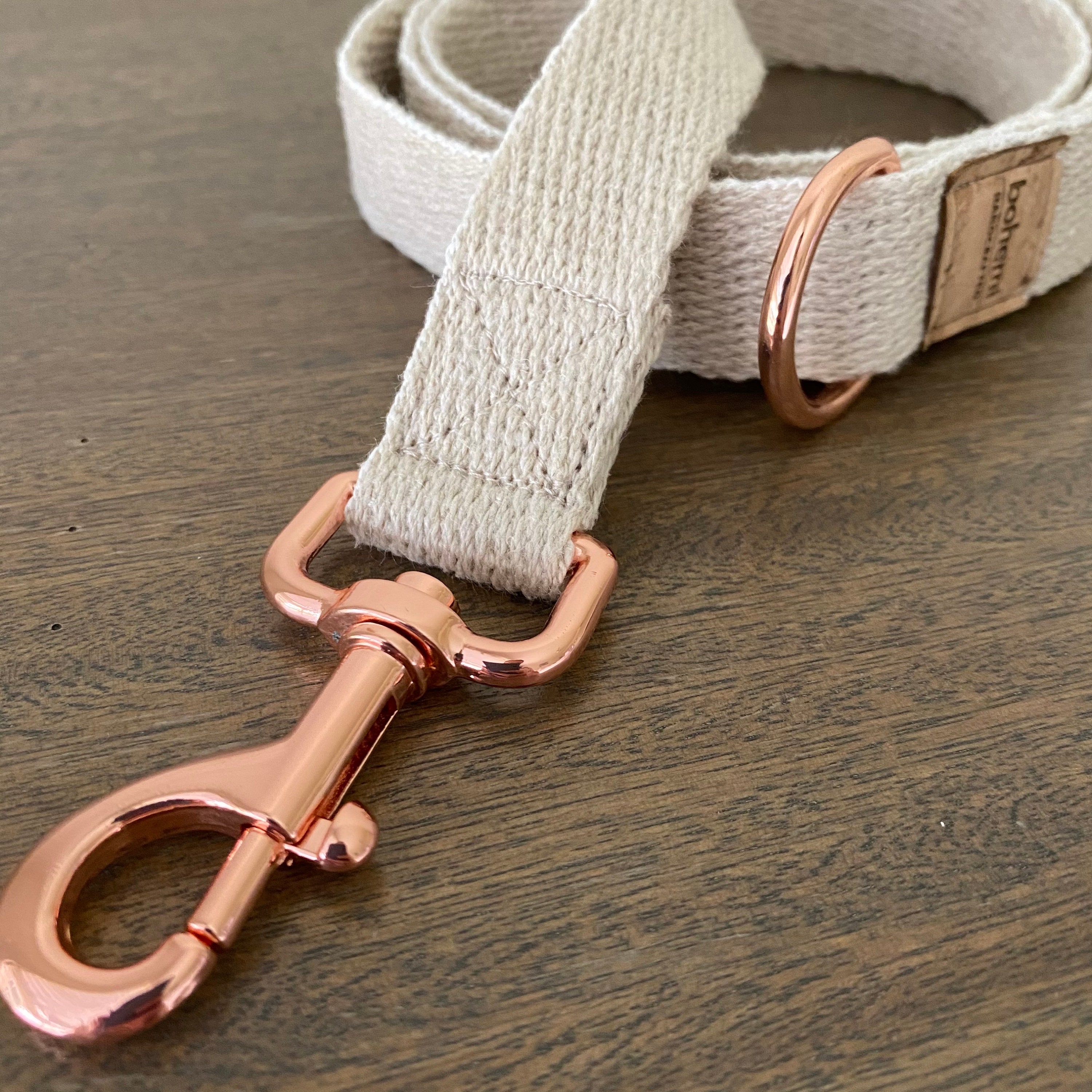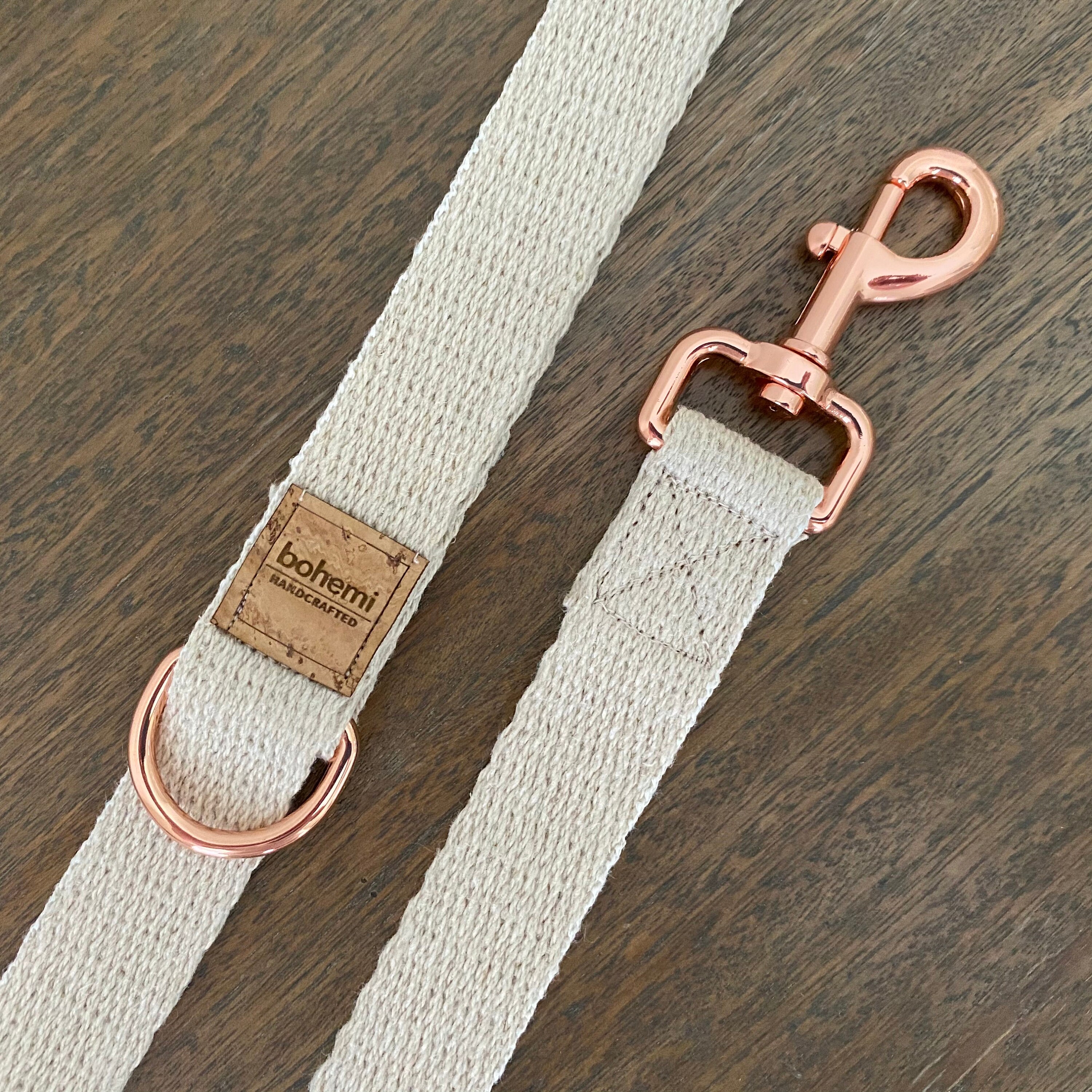 Super Soft Hemp Clip Lead with D Ring - Rose Gold - 3 Sizes