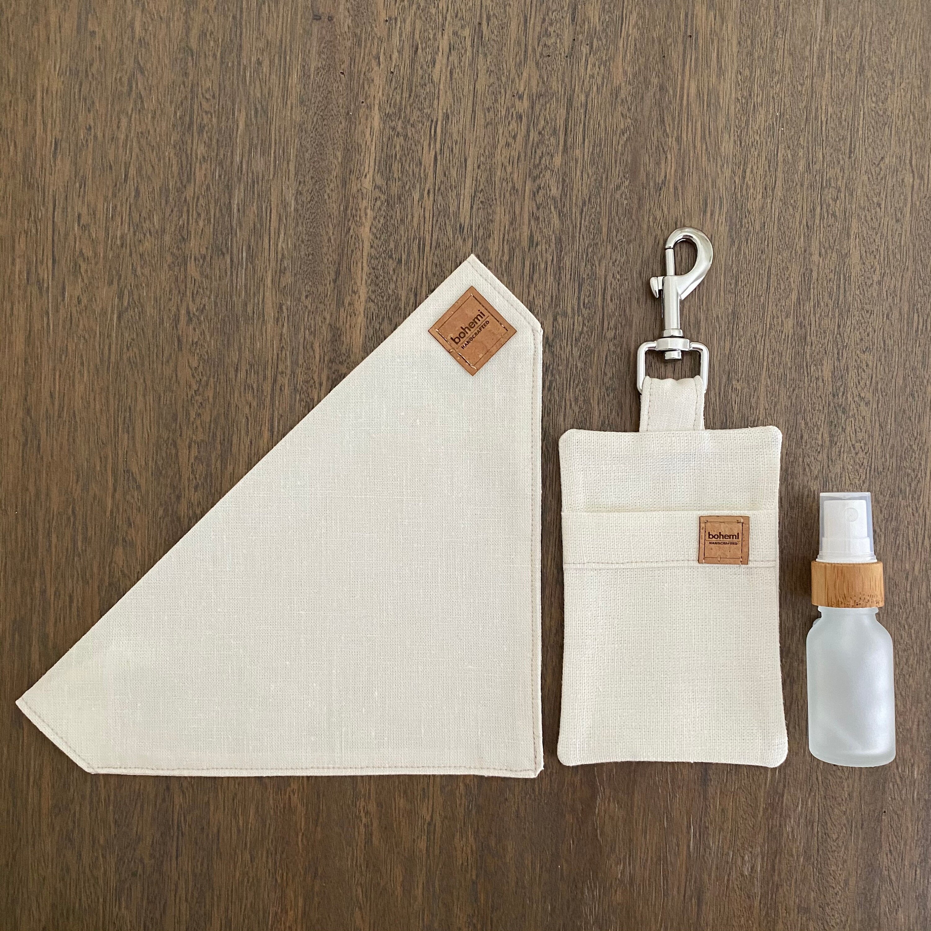 Hemp Poo Bag Mate + Bandana + 15ml Glass Bamboo Bottle - Cream